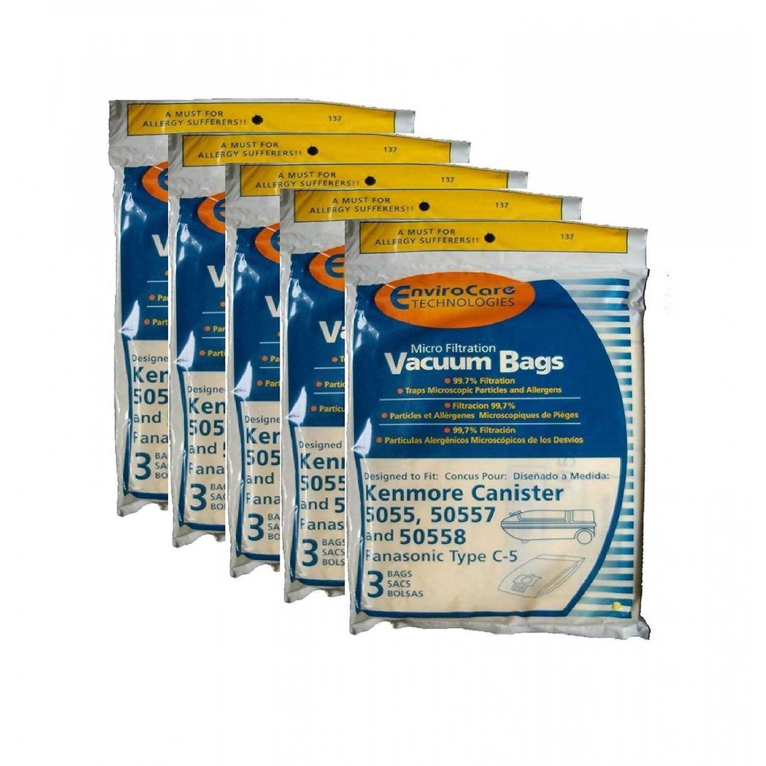 Envirocare Replacement Vacuum Bags Compatible with Kenmore Canister Type C/q. 5055, 50557 and 50558 Panasonic Type C-5 Vacuums,15 pack