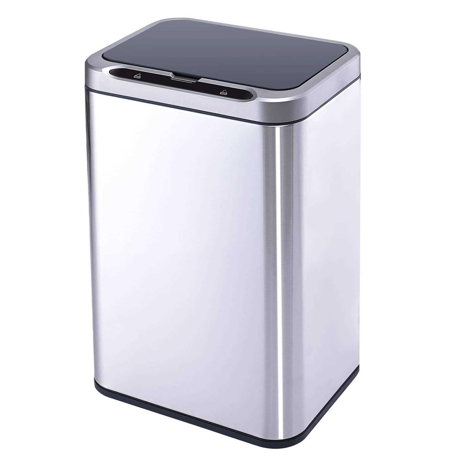 Elpheco Stainless Steel Office Trash Can 6.6 Gallon Motion Sensor Garbage Bin Rectangular Automatic Touch Free Waste Bin for Hotel and Living Room