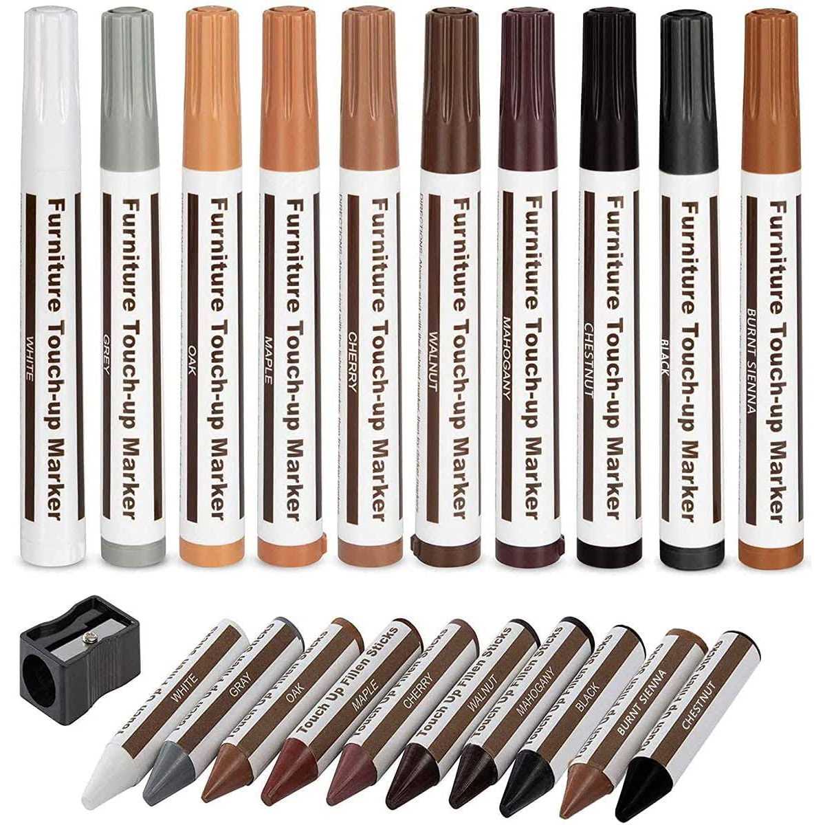Furniture Repair Kit Wood Markers Set of 13 Markers and Wax Sticks with Sharpener Kit