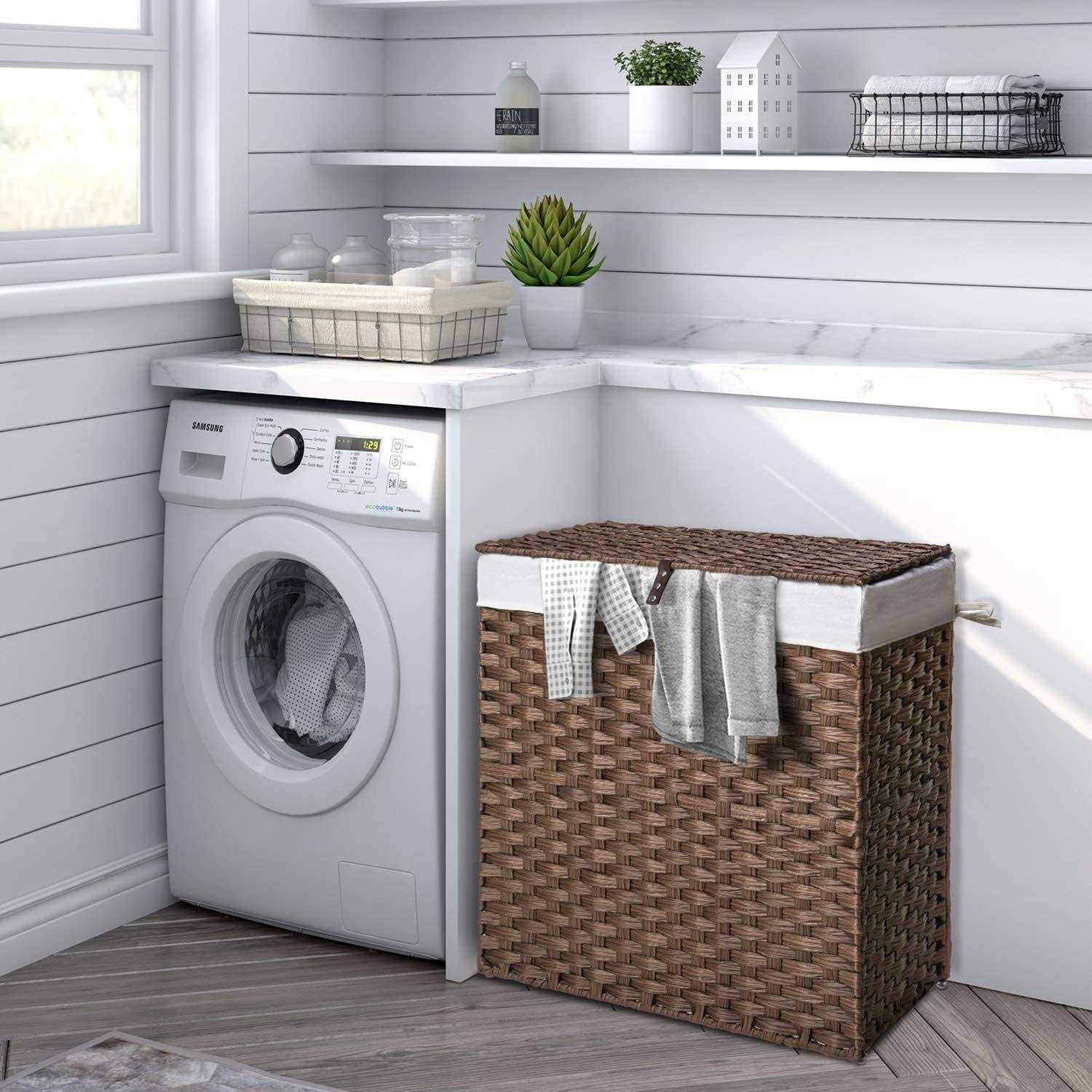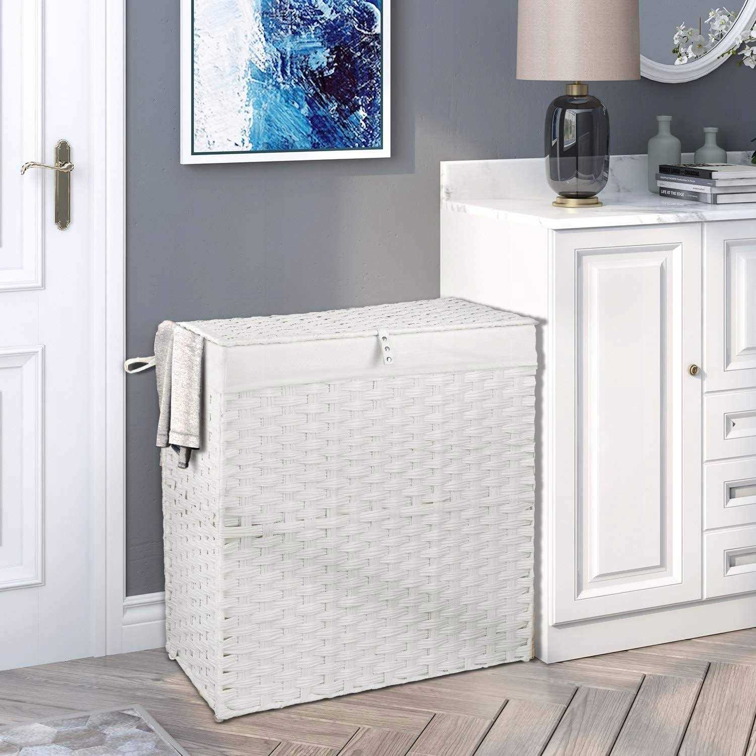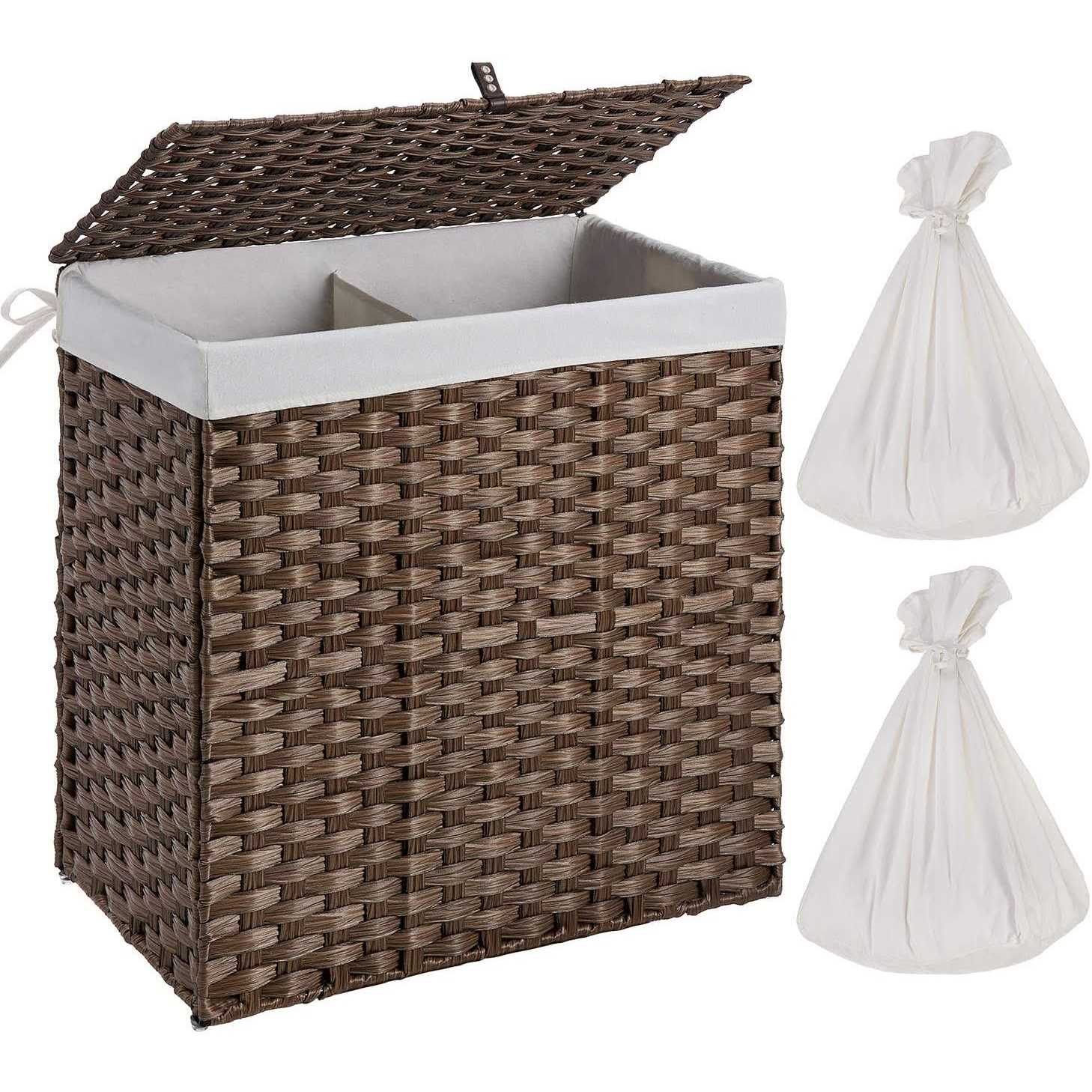 GREENSTELL Laundry Hamper with lid No Install Needed 110L Wicker Laundry Baskets Foldable 2 Removable Liner Bags