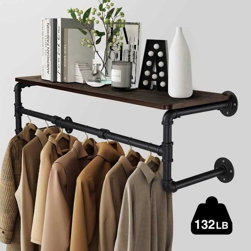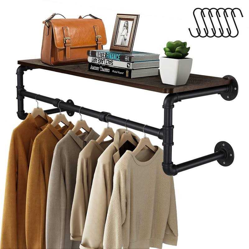 GREENSTELL Clothes Rack with Top Shelf 41in Industrial Pipe Wall Mounted Garment Rack