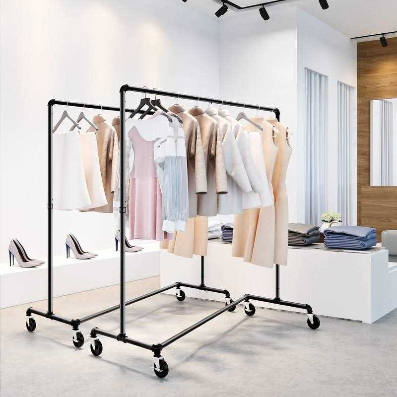 GREENSTELL Clothes Rack Z Base Garment Rack Industrial Pipe Clothing Rack on Wheels with Brakes