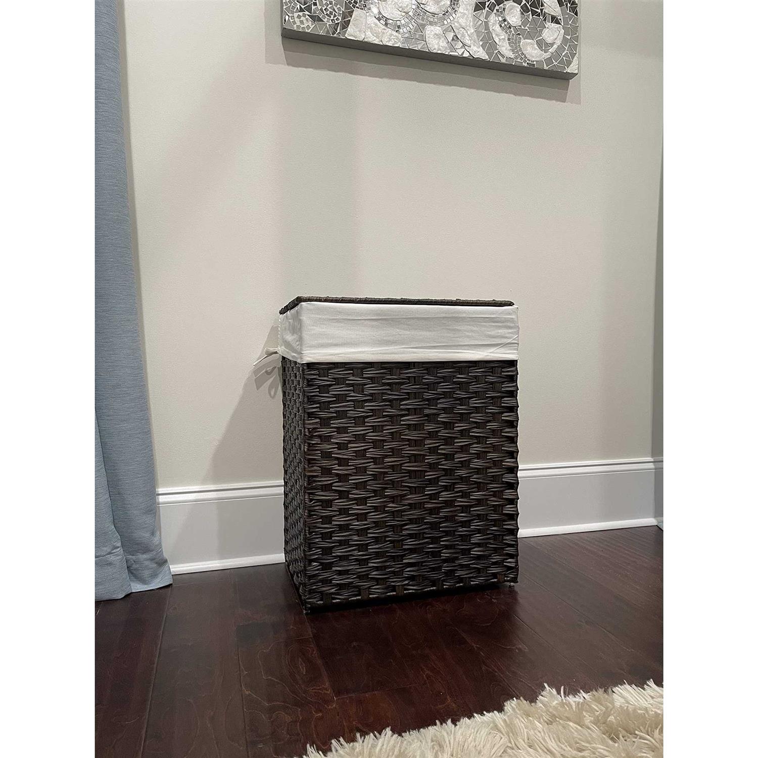 SONGMICS Handwoven Laundry Hamper, 23.8 Gal Synthetic Rattan Clothes Laundry Basket with Lid and Handles