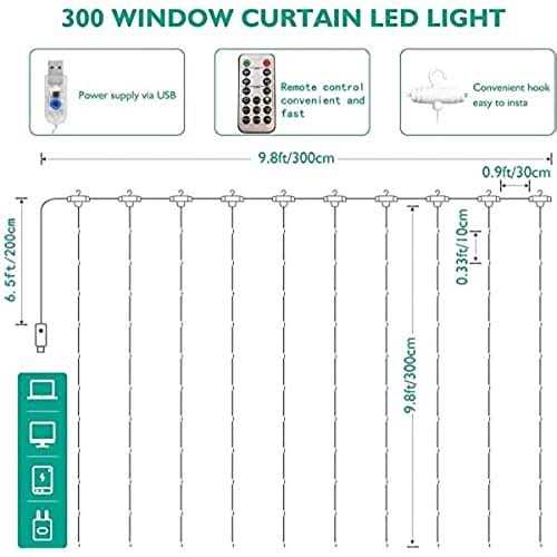 CHU&WHITE curtain lights 300 led twinkle fairy lights with remote usb powered for wedding christmas backdrop for bedroom home room Decor