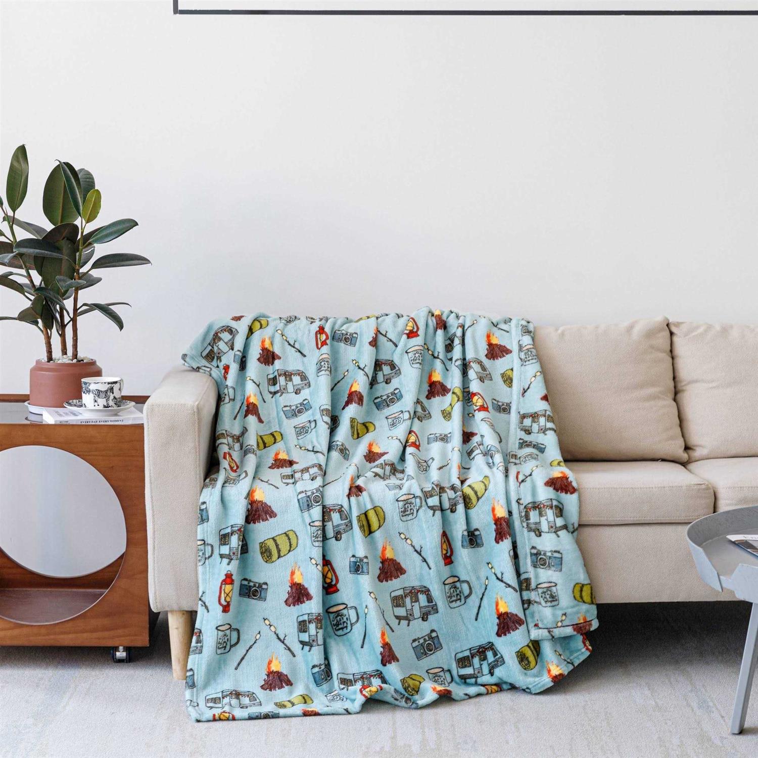 Sutton Home Fashions 50×60 Printed Velvet Camping Print Throw Blanket