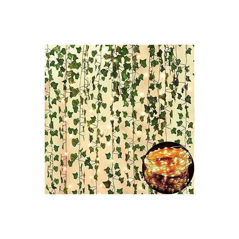 Subjects by Comtelek. Details:Package:12 strands ivy leaves vine,100 led string lights,50* green cable ties MATERAL: Leaves were made from silk and the stems were made from plastic. High quality, not easy to fall off. APPLICATION: Indoor: Suitable for bookshelf, wardrobe, shelves, shelf, air conditioning, refrigerator, staircases, walls,fences,frame a window,hanging baskets etc. outdoor: Garden, pergola, garage, swing, fence, etc. Special scen: Wedding,birthday, Valentine’s day, anniversary, Christmas, Backdrop, jungle decorations, safari party supplies,home,kitchen, office, shopping malls, family decorations, cafe. You can put them in a ventilated place for a couple of days and they will not do any harm to your body. How to clean and control the simulation ivy? after a long time of placement, the ivy vine will accumulate dust. If with less dust, you can use a hair dryer to clean up in cold wind state, or you can also use a feather duster to flick on the surface; if with…