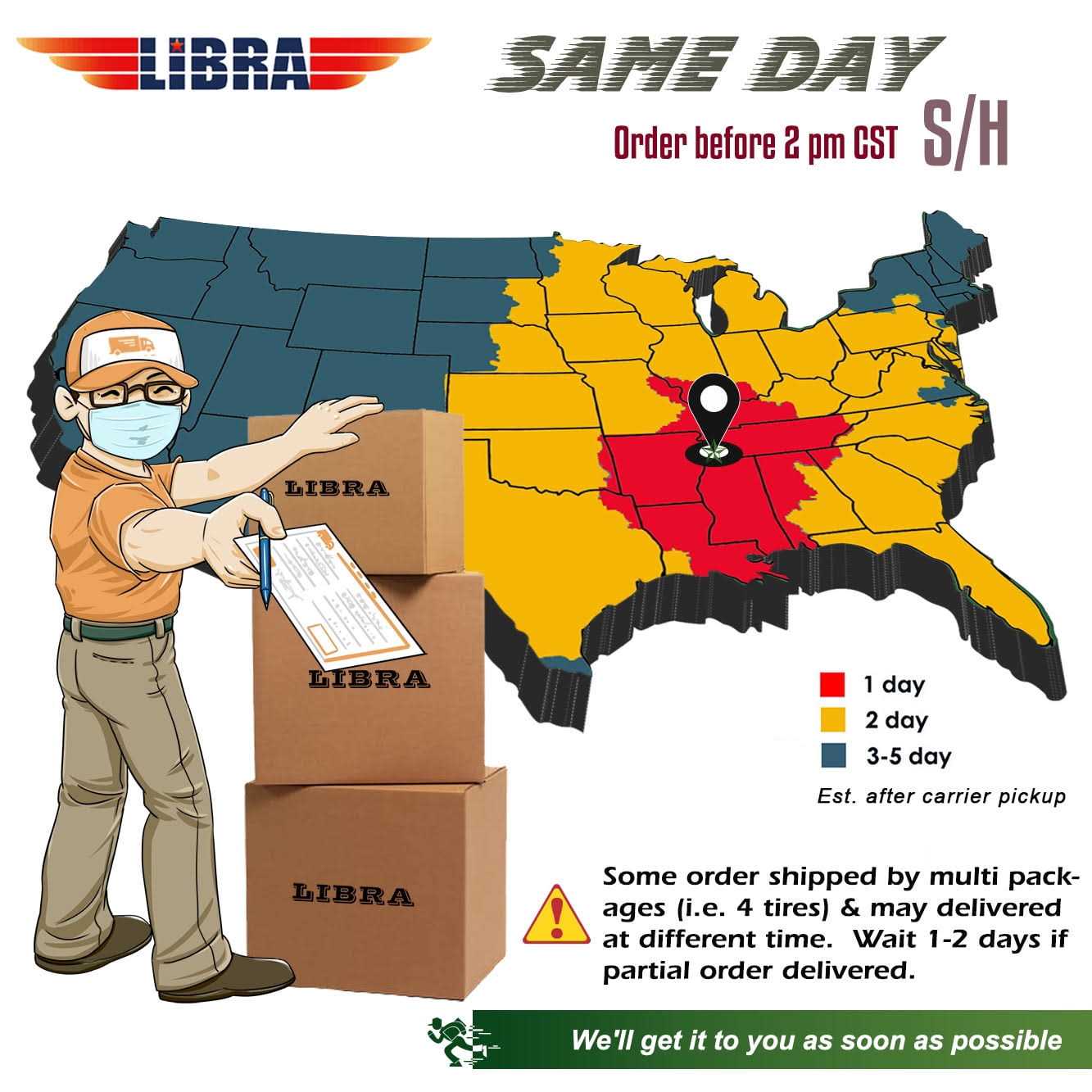 Order Processing: After your payment is authorized and verified, we will start processing your order and this process can take from 1 to 2 business days, so please be patient with us. If we are unable to process your order due to inaccurate or incomplete payment or incorrect address information, your order processing may be delayed.