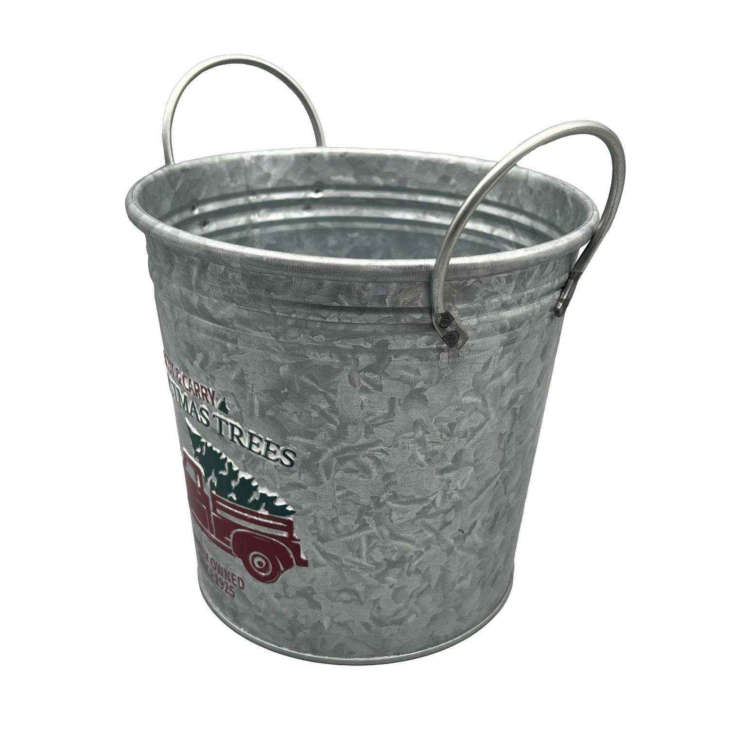 7.5 inch Christmas Tree & Truck Metal Decorative Bucket by Ashland-Christmas Decorations, Size: 7.08” x 6.5” x 7.59”