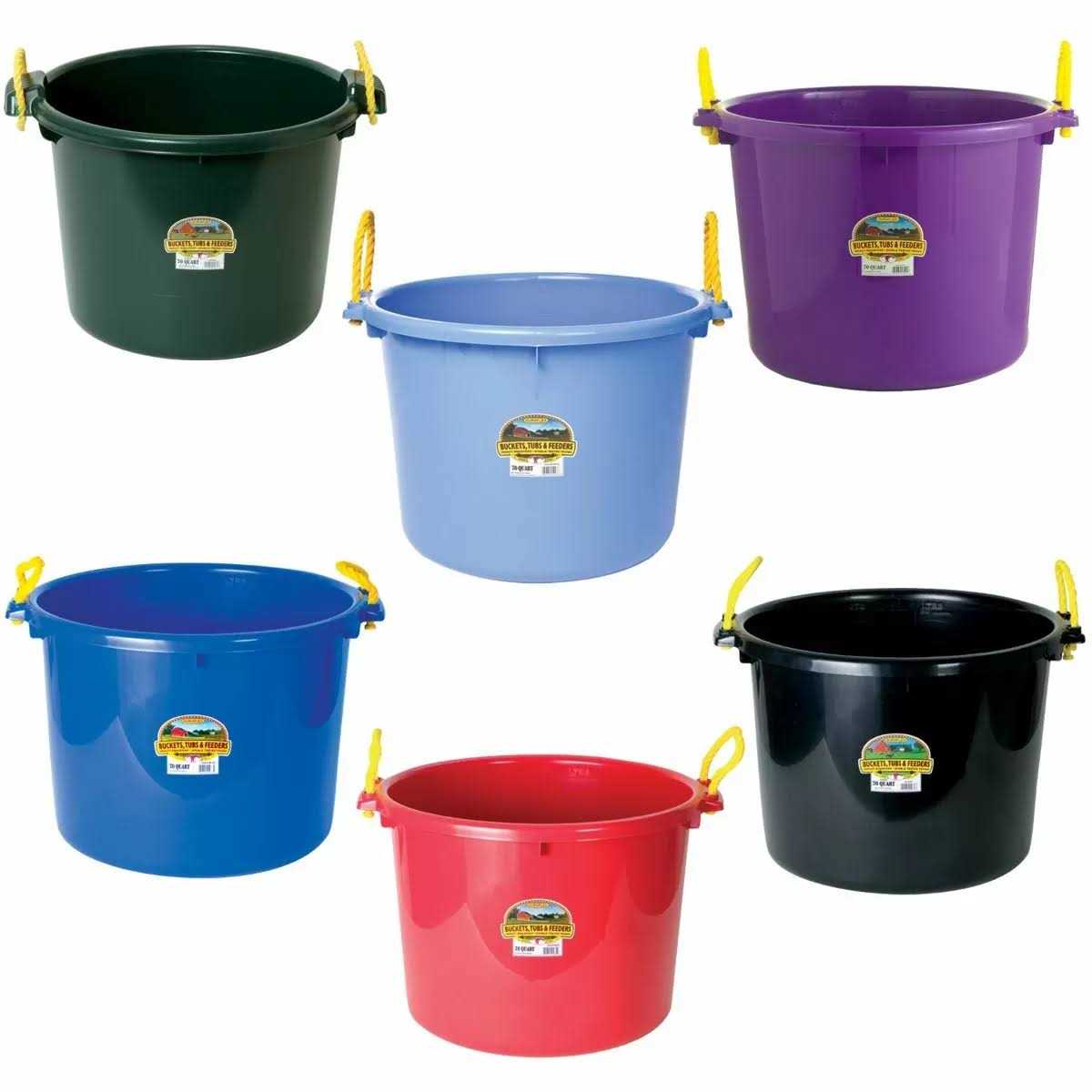 The perfect solution to a never-ending problem! The Little Giant 70-Quart Muck Tub can help you handle big or small cleanup jobs with ease. The ample mouth size lets you load it up fast. The plastic handles are tested 2x stronger than rope and feature a molded grip for comfortable carrying. Lifetime guarantee on handles. Made from high-density polyethylene to protect against warpage and help prevent stress cracks. 21.75 inch diameter (exclusive of handles) by 17.25 inch high, holds 70 quarts (17.5 gallons). To make mucking jobs even easier, this tub fits perfectly on the Little Giant Multi-Purpose Muck Cart (Item No. CA500, sold separately).