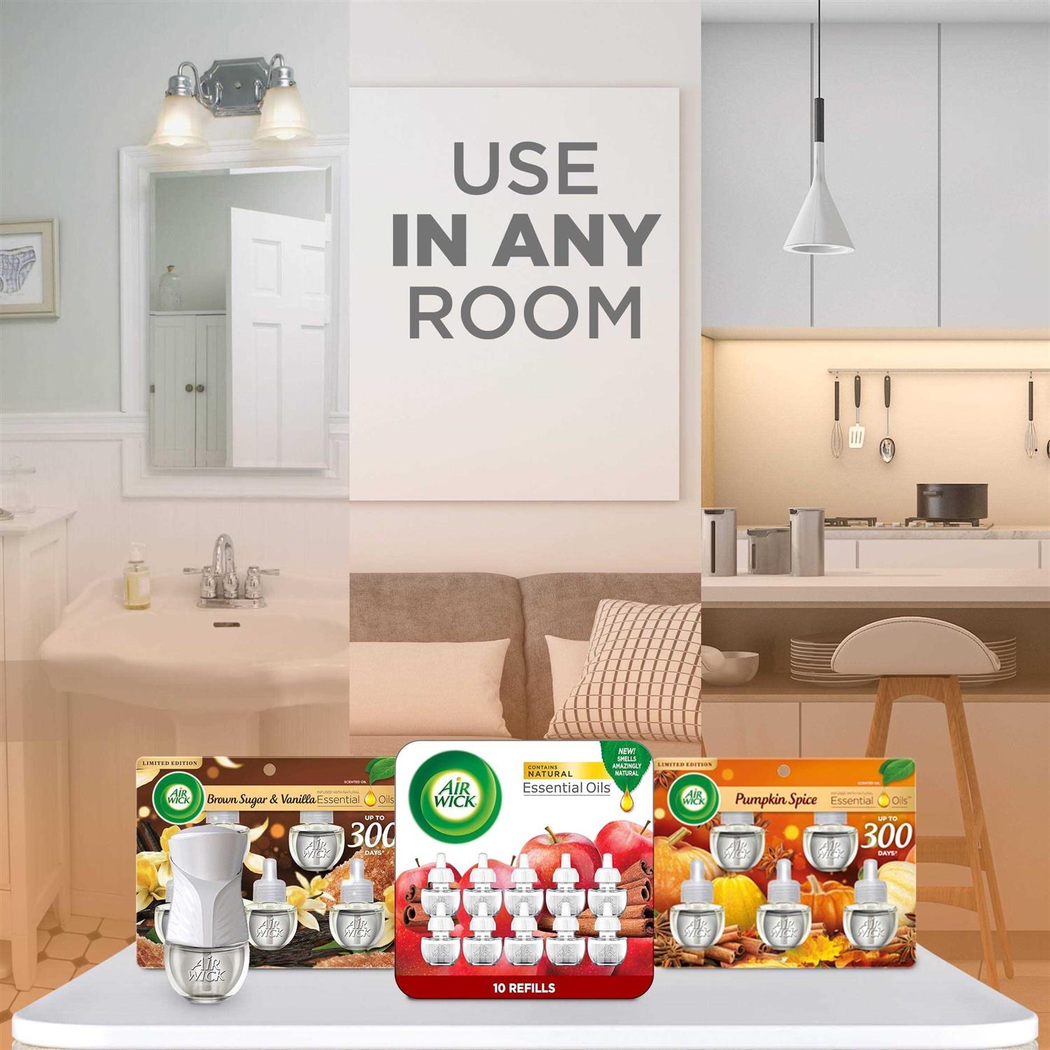 Indulge in the scent of a perfect pumpkin pie filled with sweet pumpkin warm baking spices and topped with homemade whipped cream with Air Wick Scented Oil Pumpkin Spice. Enhance your homes scent with Air Wick Scented Oil Refills infused with 100% natural essential oils. Air Wick Scented Oil Refills release continuous fragrance for up to 60 days per refill based on low setting so your home smells welcoming. The Air Wick scented oil warmer releases fragrance upwards and outwards reaching every corner of the room for a consistent fragrance experience. Refills are compatible with all versions of Air Wick plug warmers. The Air Wick Scented Oil warmer also allows you to choose between 5 fragrance settings for just the right amount of fragrance. It continuously diffuses and carefully blends fragrance throughout your home office or any space.