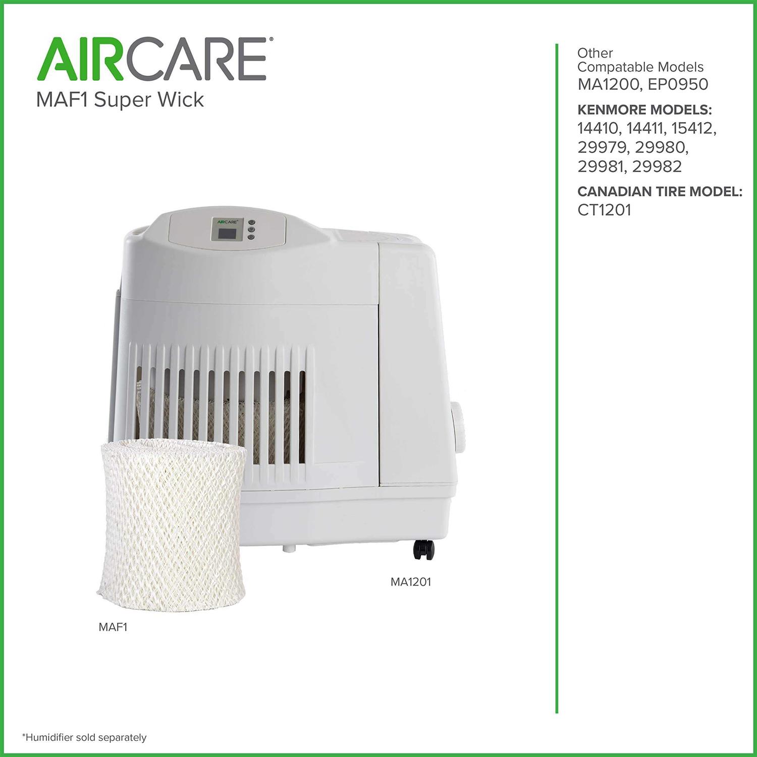 For Aircare humidifier model MA1201 Contains 3 Wicks An evaporative humidifier is only as good as the wicking filter inside. Our AIRCARE MAF1 Super Wick is proudly made in the USA from the highest quality paper for extra absorbency, better moisture output, and longer use. Every wick features our unique Trapmax filtration technology.