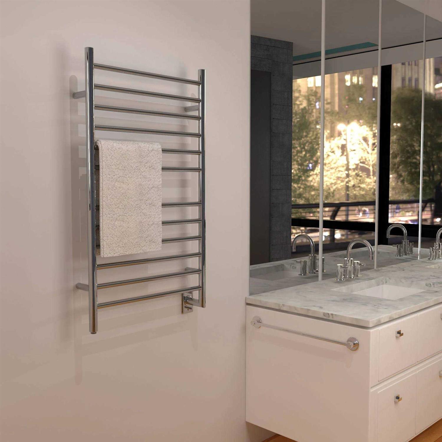 The radiant collection features affordable, wall-mounted towel warmers. Choose between a round or square bar design, straight or curved horizontal bars, and hardwired or plug-in. A shelf unit is also available for to warm/dry towels and provide additional storage. Made of high quality 304 stainless steel, they are offered in a variety of finishes. Rated at 50-150 watts, equivalent to a few light bulbs, they consume minimal power. Programmable timers can be added for additional control.