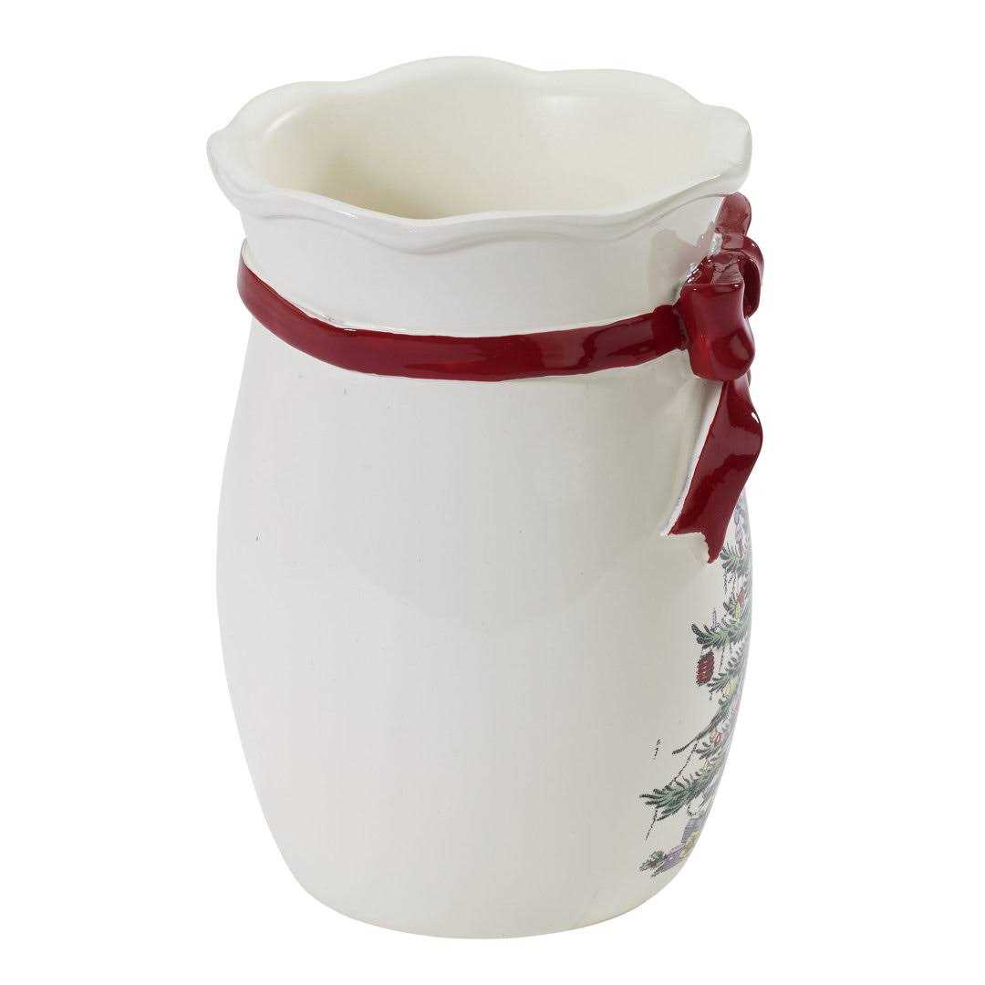 Bring charming holiday nostalgia to your bath with the Spode Christmas Tree tumbler from Avanti. The iconic conifer silhouette is rendered in beautiful detail and accented by a sweet red bow at the neck and a fluted lip.