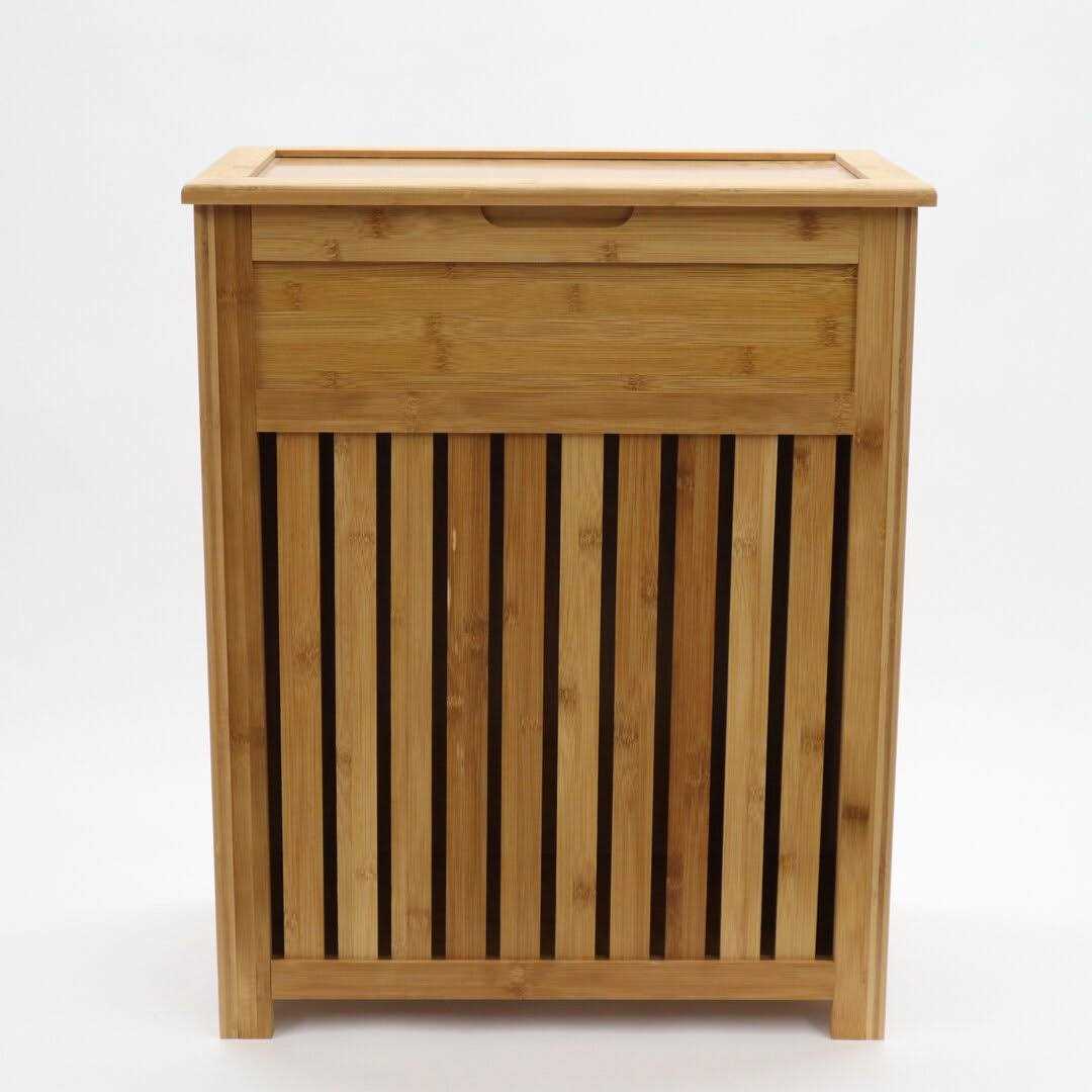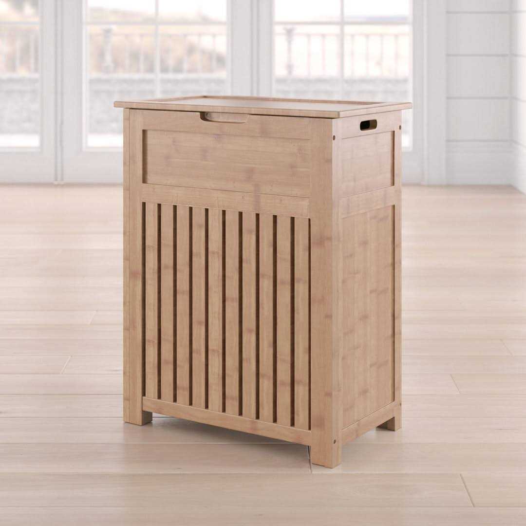 Bay Isle Home Keep your laundry hidden in plain sight with this convenient hamper, stylish enough to sit out in the bathroom or bedroom. Crafted from solid bamboo wood, this eco-friendly piece showcases slatted accents for ventilation, as well as two handles that let you easily move it between rooms. A natural brown stain outfits this clean-lined design for a touch of warmth, ensuring it’s neutral enough to complement any colour palette you pick.