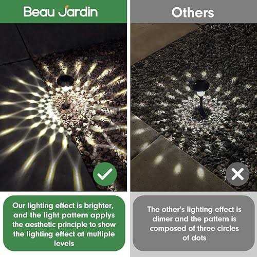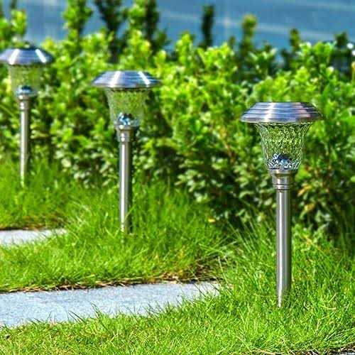 Beau Jardin 4 Pack Solar Lights Pathway Outdoor Waterproof Supper Bright Up to 12 Hrs Glass Stainless Steel Metal Auto On/Off Solar Powered