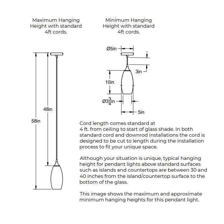 100 Series Glass: Elliptical shaped glass shades embody a harmonious blend of form and function where the delicately curved glass showcases the interplay of light and shadow, creating a captivating visual experience. Lunar Finish: A breathtakingly beautiful design that mimics the craters and bubbles found on the moon’s surface. With its unique texture and stunning visual effect, this finish adds a touch of lunar beauty to any lighting fixture, making it a striking addition to any room. 147 Shade Dimensions: Diameter: 5.3″ Height: 10.3″ Mounting: Fixture base is 5.0″ in diameter and 1.0″ high. Designed for hardwired installation. Can mount both upwards and downwards. Light Bulb Specifications: Each purchase includes a fully dimmable 4W bulb. Bulb Base: E26 medium/standard Bulb Style: LED Edison Filament Color Temperature: 2700k, warm white Brightness: 400 lumens Because the glass shade is handcrafted, the overall dimensions may vary.