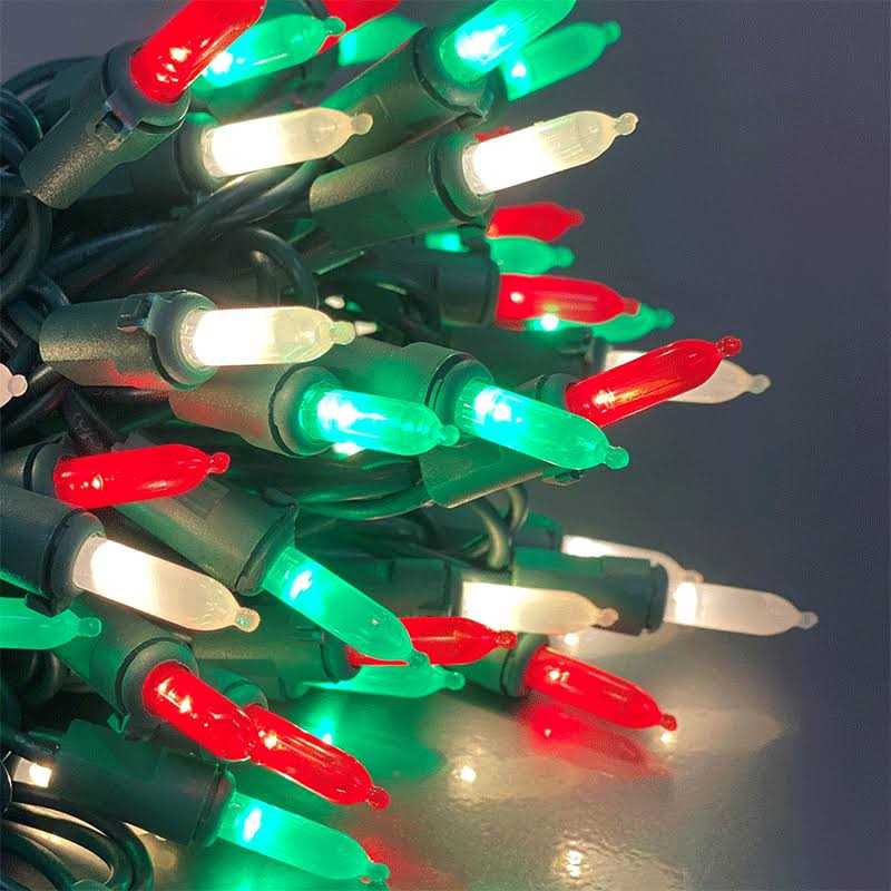 50 red/green and frosted white miniature lights on a 17 foot green wire. The red/green and frosted white miniature Christmas lights features 4 inch spacing between bulbs. The 50-count red/green and white frosted mini LED string lights are great for decorating for Christmas or Valentine’s Day.