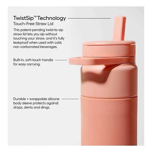 The Rotera series was made for all day hydration. So, what makes it different? The TwistSip straw lid offers on-demand sanitary sips, our signature ColdKey stainless steel straw prevents plastic from sitting in your water all day, our BevGuard technology keeps ice for 24+ hours and the swappable soft-touch sleeve makes this the most durable and customizable insulated bottle ever.