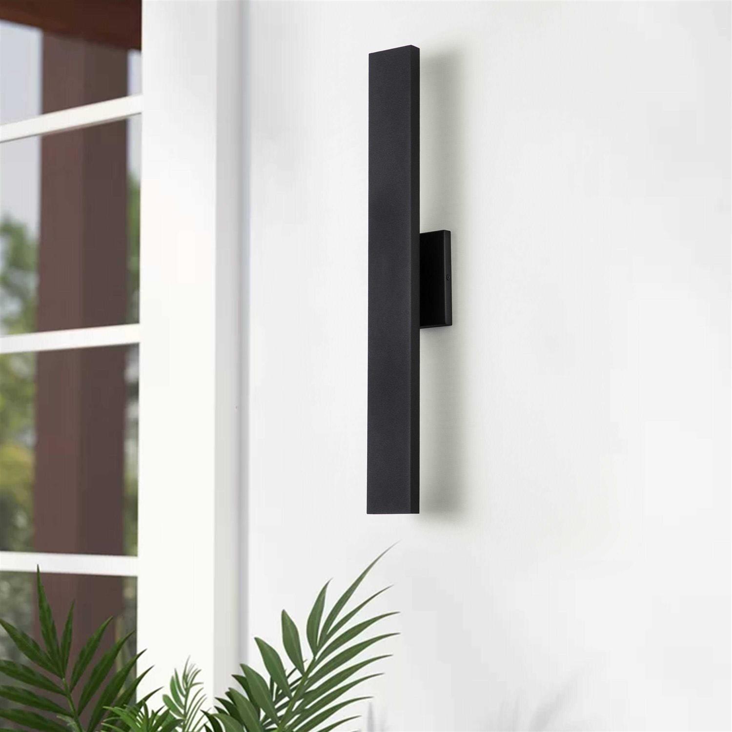 Seamless, unified design on this modern black outdoor wall sconce takes minimalist to the next level. Beautiful in an ultra-sleek contemporary living space, the light features a flat, vertical panel with a black finish that hides frosted glass diffusers. Delivering exceptional style and wonderful energy-efficient illumination, this sconce is right at home in an entry or bedroom.