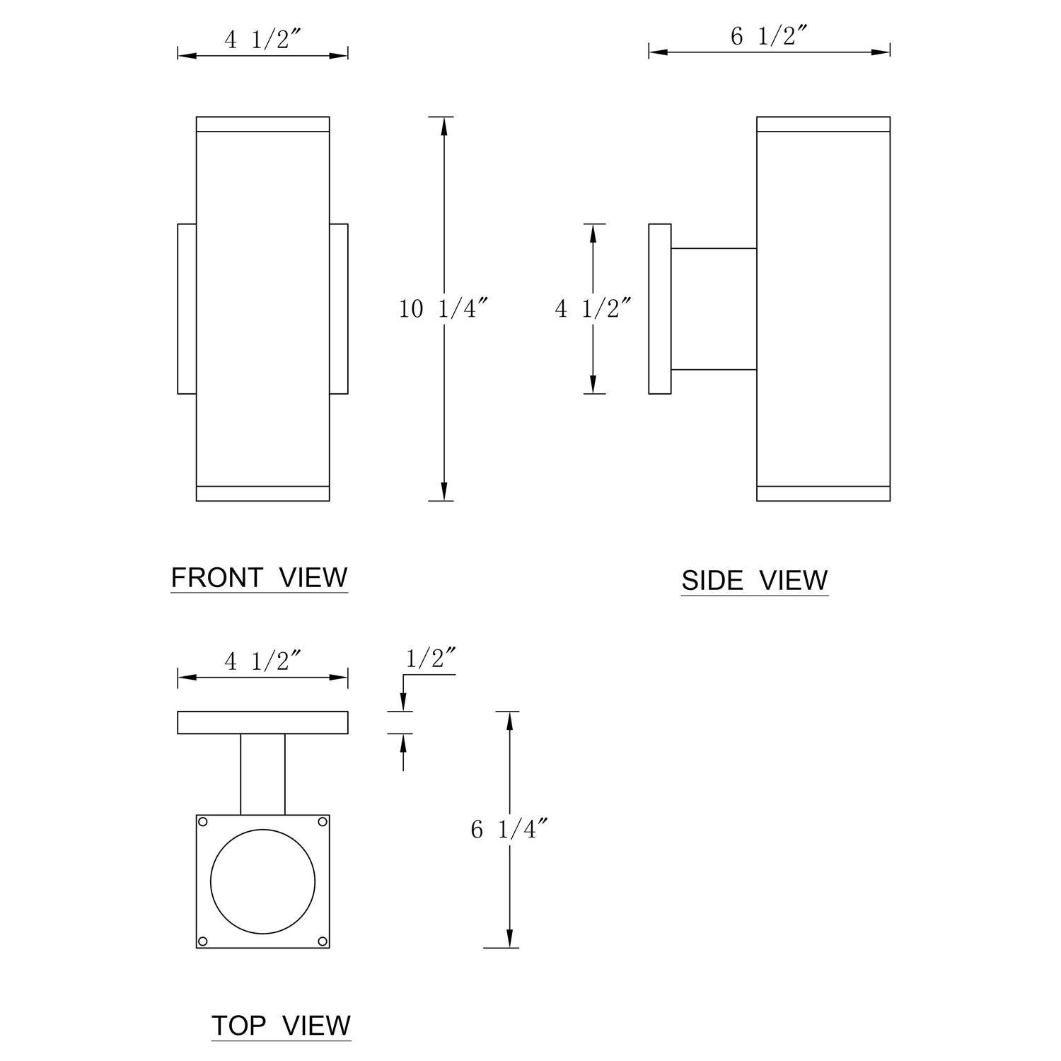 - “The light fixture is W4.5in x E6.5in x H10.25in.