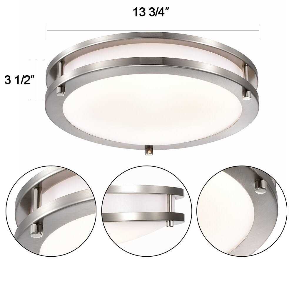The LED flush mount features a stylish design with a decorative brushed nickel double band frame, adds a clean-line touch of elegance to any room’s decor. The white acrylic diffuser of the flush mount light provides soft and eye-care ambient lighting to the room. You choose from 3 color temperatures 3000K/4000K/5000K using an integrated switch directly on fixture. The light also can be adjusted brightness with a dimmer switch. It provides general illumination and is ideal for bedrooms, hotels, hallway, and many other settings.