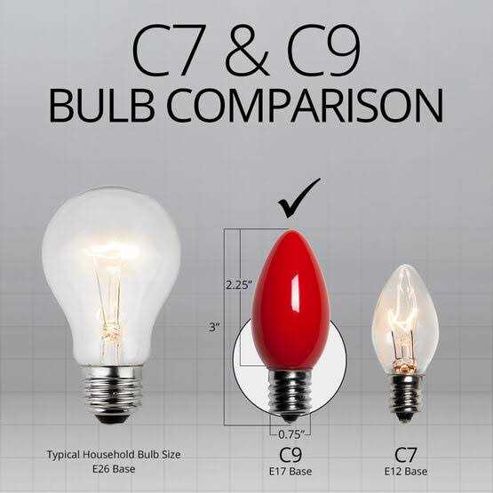 Commercial grade bulbs with average lifetime of 3,000 hours. Nickel plated bases prevent corrosion and improve connectivity, saving you time and money. Opaque Christmas bulbs cast a soft color glow by diffusing the light. C9 bulbs measure over 2.5 inches from base to tip. Use with C9 strings, sold separately. Indoor / Outdoor use.