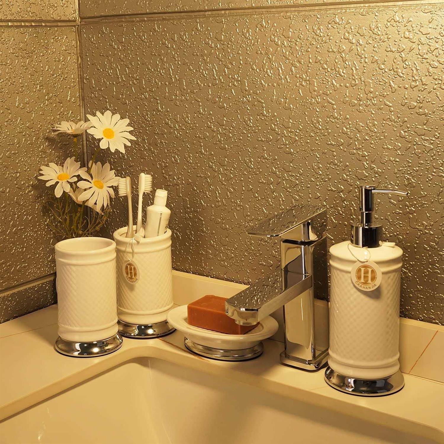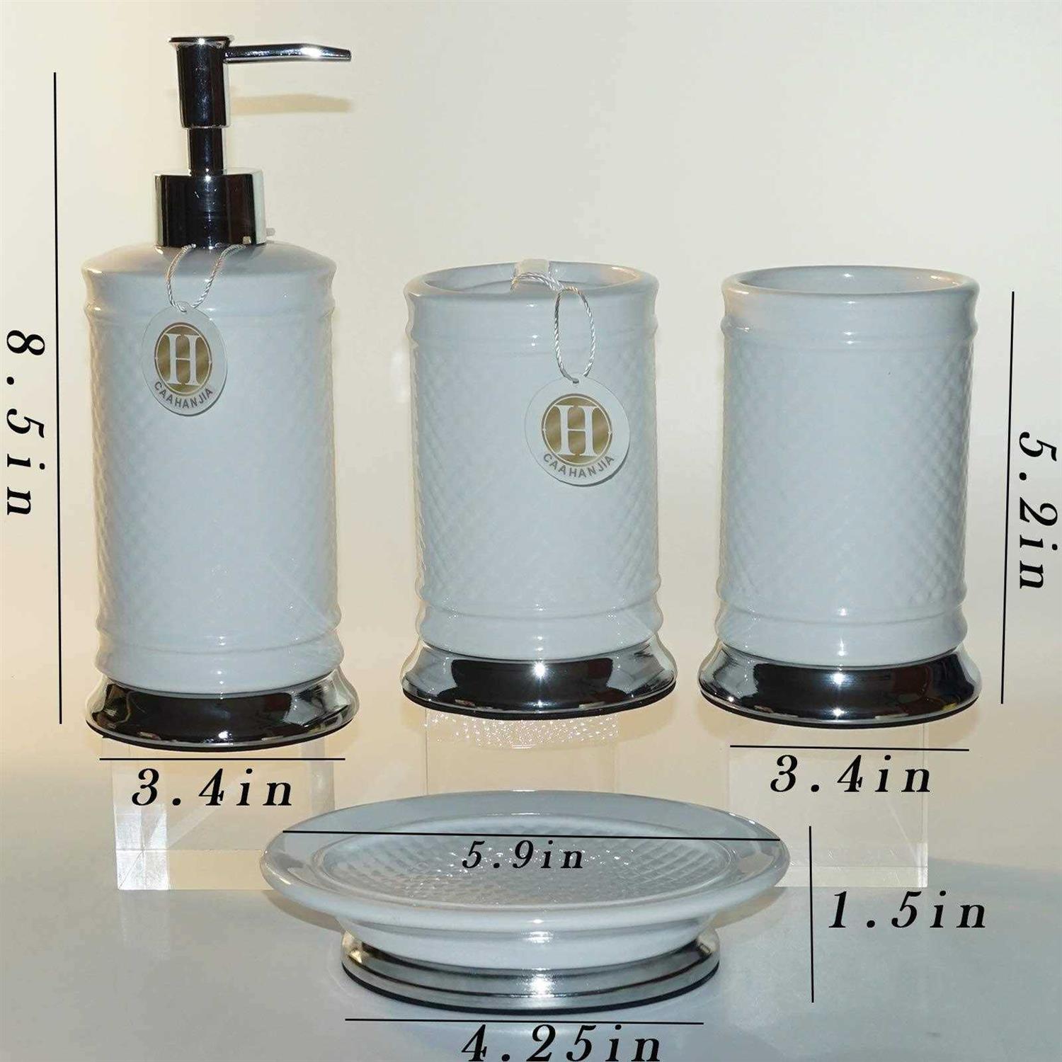 Caahanjia Bathroom Accessories Set 4 Pcs-ceramic Gift Set Soap Dispenser Pump & Toothbrush Holder & Tumbler Cup & Soap Dish