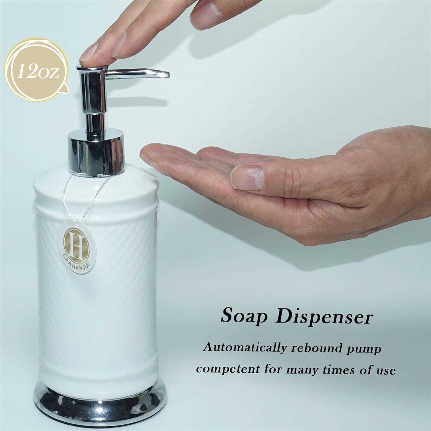 CAAHANJIA Bathroom Accessories Set 4 Pcs-Ceramic Gift Set Soap Dispenser Pump & Toothbrush Holder & Tumbler Cup & Soap Dish – Bathroom Hom