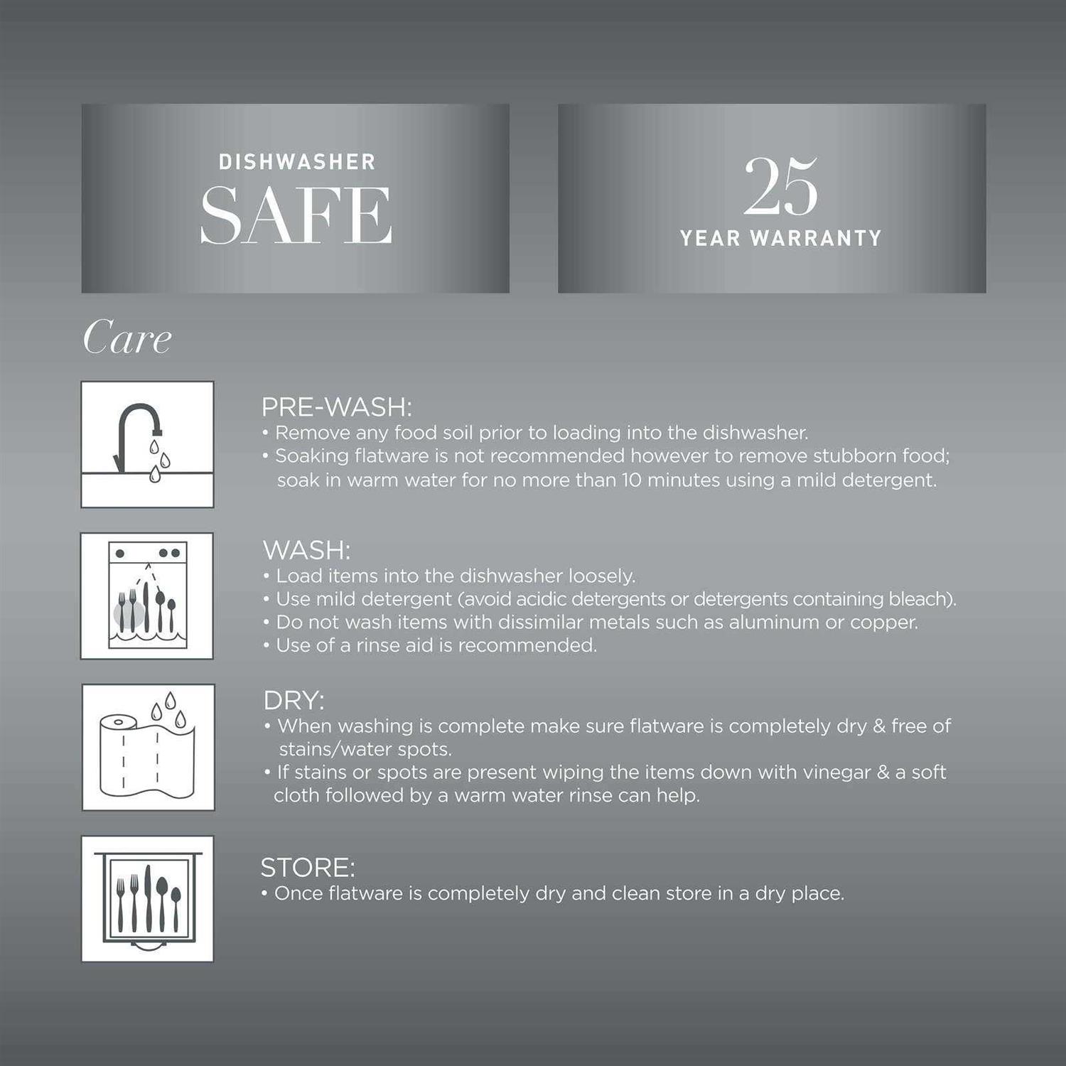 Features a pleasant retro look, comfortable red oval handles with stout rivets, and smoothly integrated metal tips. Material: 18/0 Stainless Steel Dishwasher Safe. Avoid using abrasive cleaning agents such as steel wool and citric acid detergent. Do not soak, clean after use.