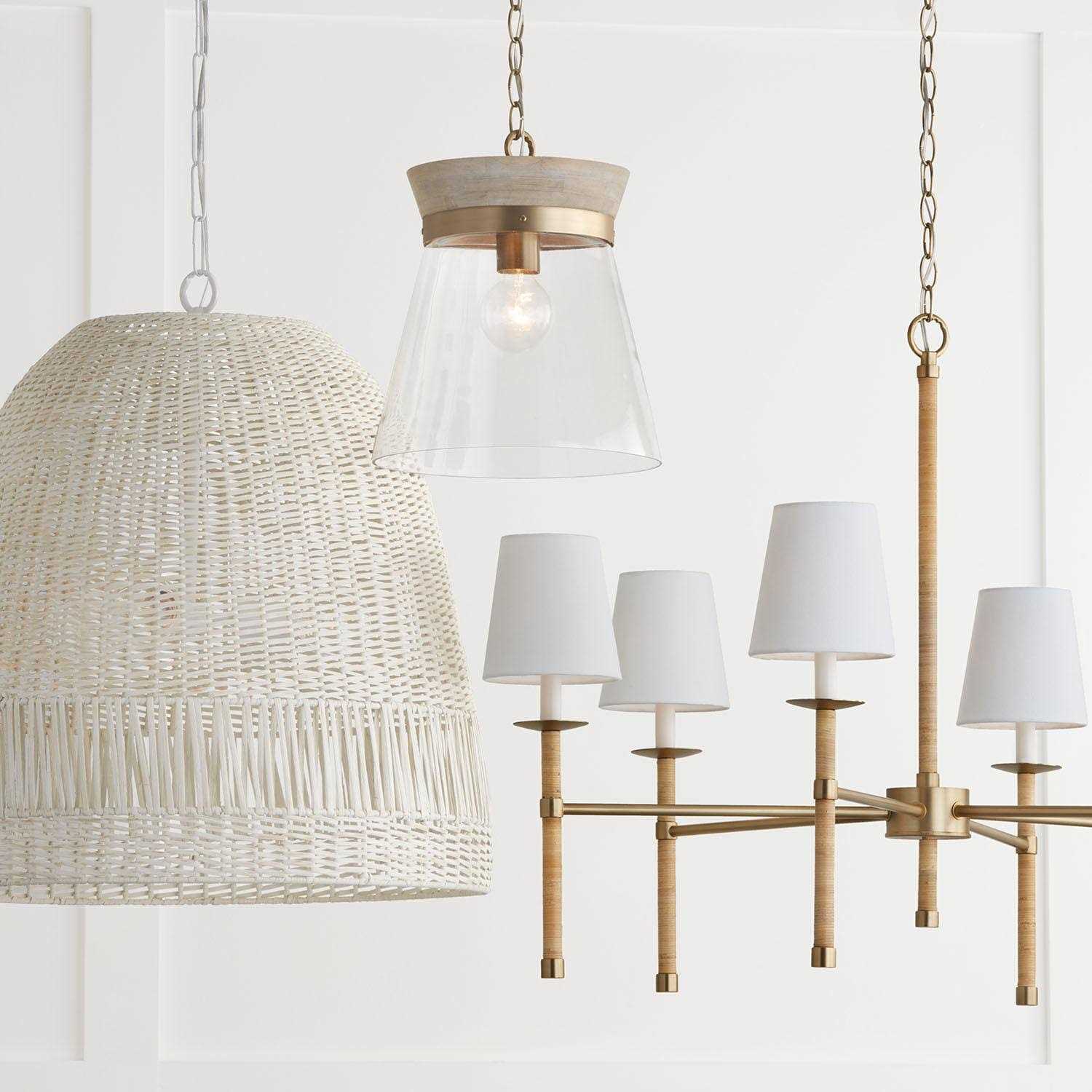Capital Lighting Effortlessly blending Matte Brass with white-washed mango wood, the Finn Pendant creates a sophisticated aesthetic. The crisp angles paired with clear glass add elegant dimension to this classic style.