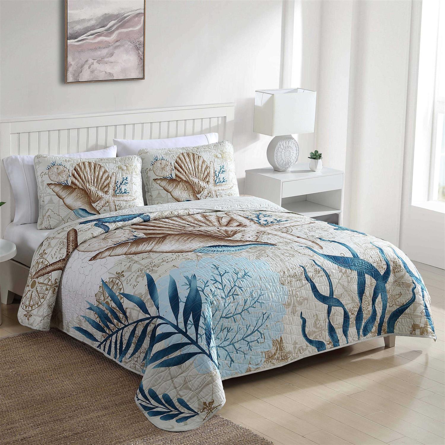 Caribbean Joe 3-Piece Coastal Quilt Set, Blue, Full/Queen