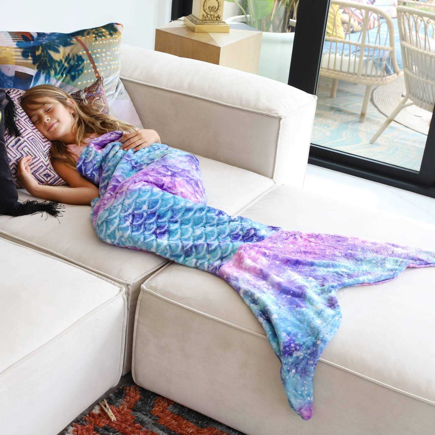 Catalonia Kids Mermaid Tail Blanket, Super Soft Plush Flannel Sleeping Snuggle Blanket for Girls, Galaxy, Fish Scale Pattern, Gift Idea