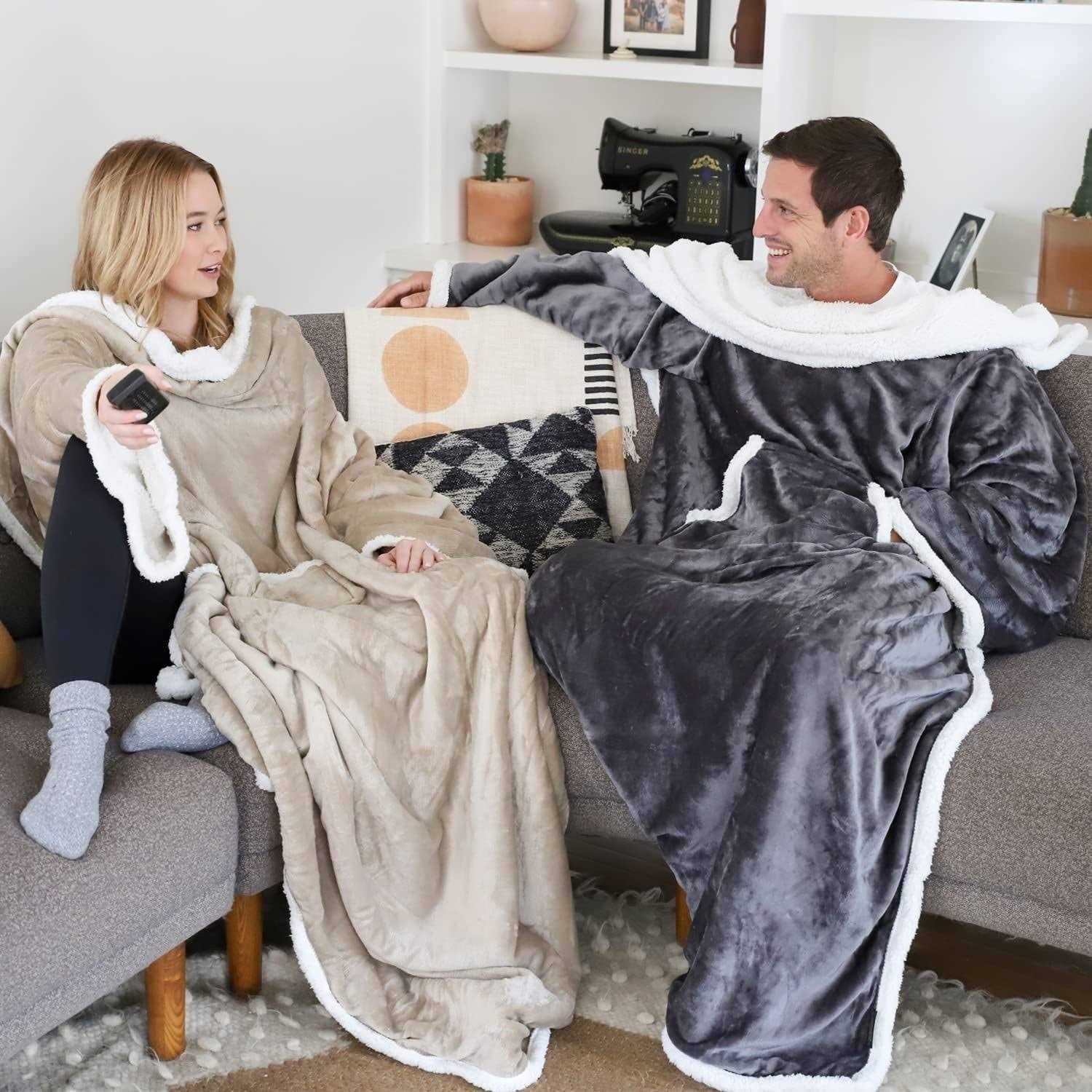 Catalonia Sherpa Wearable Blanket with Sleeves Arms, Super Soft Warm Comfy Large Fleece Plush Sleeved TV Throws Wrap Robe Blanket for Adult Women and Men