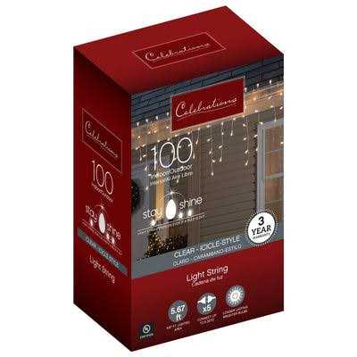 Celebrations Incandescent Icicle Light Set Clear 5.67 ft. 100 Lights