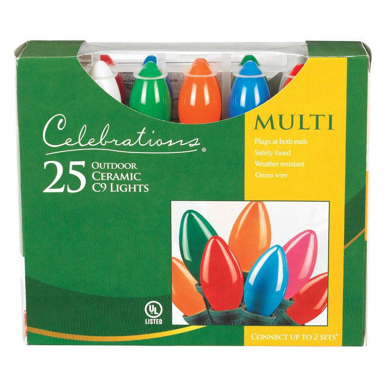 Celebrations Indoor/Outdoor C9 Lights, 25 Bulbs, Multicolor, 25′