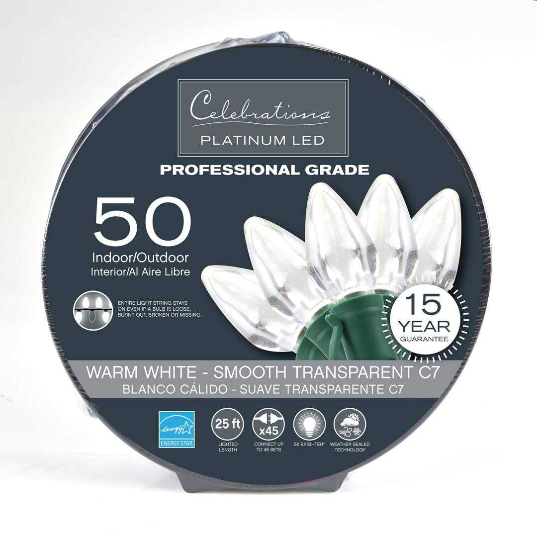 - Celebrations Platinum LED C7 Clear/Warm White 50 count String Christmas Lights