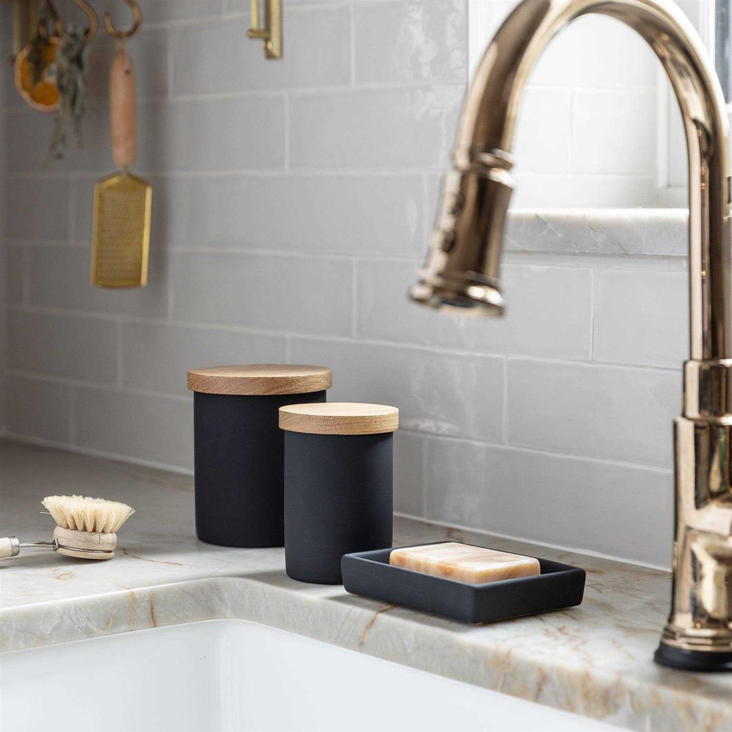 Store everyday essentials in our Collection of classic Ceramics. Whether in the bathroom, kitchen, entryway, or bedside, these storage pieces will be your new favorite. Made of Handmade stoneware with a modern matte finish in Bone (warm, neutral white) and Black.
