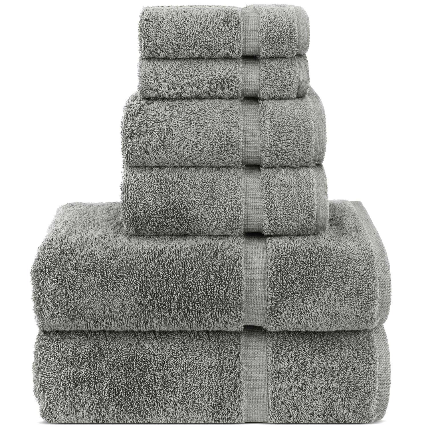 Chakir Turkish Linens Luxury Spa and Hotel Quality Premium Turkish Cotton 6-Piece Towel Set (2 x Bath Towels 2 x Hand Towels 2 x Washcloths Gray)