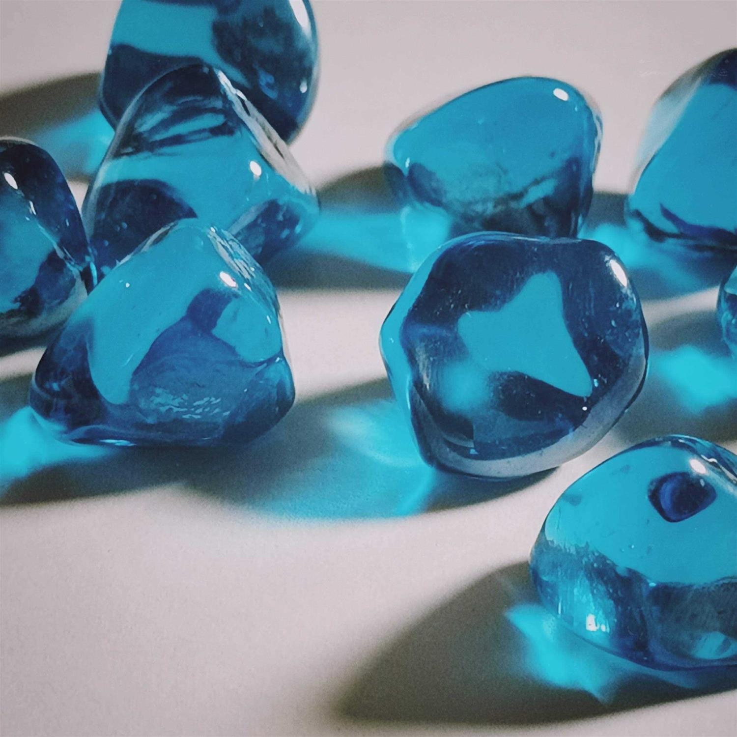 Chilli Cosmos Fire Glass Diamond 1 inch Fire Pit Glass Rocks for Propane or GAS Fire Pit (10 Pounds Margarita Azura Blue ) Gift Package