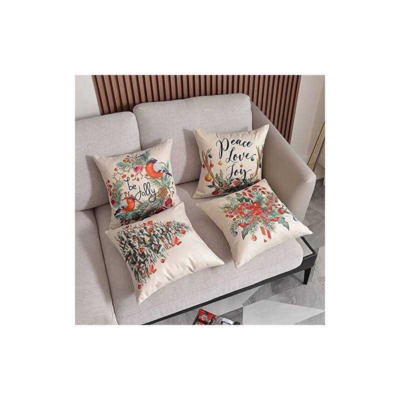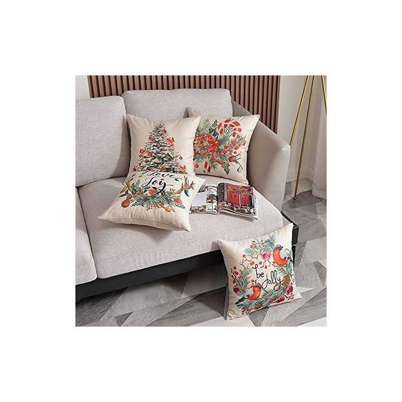 Cirzone Christmas Throw Pillow Covers Christmas Outdoor Pillow Covers Cotton Linen Christmas Pillow Covers 18×18 Christmas Decorations Set of 4 for