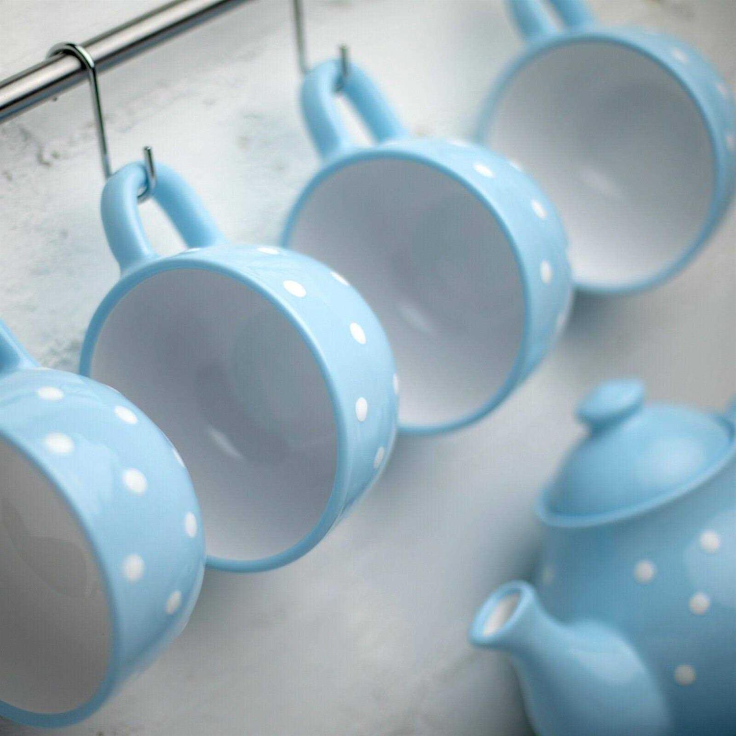 City to Cottage Handmade Ceramic Designer Light Blue and White Polka Dot Cup, Unique Extra Large 17.5oz/500ml Pottery Cappuccino, Coffee, Tea, Soup
