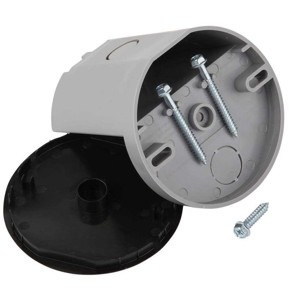 - Energy efficient round design includes 4 knockouts for conduit or NM cable