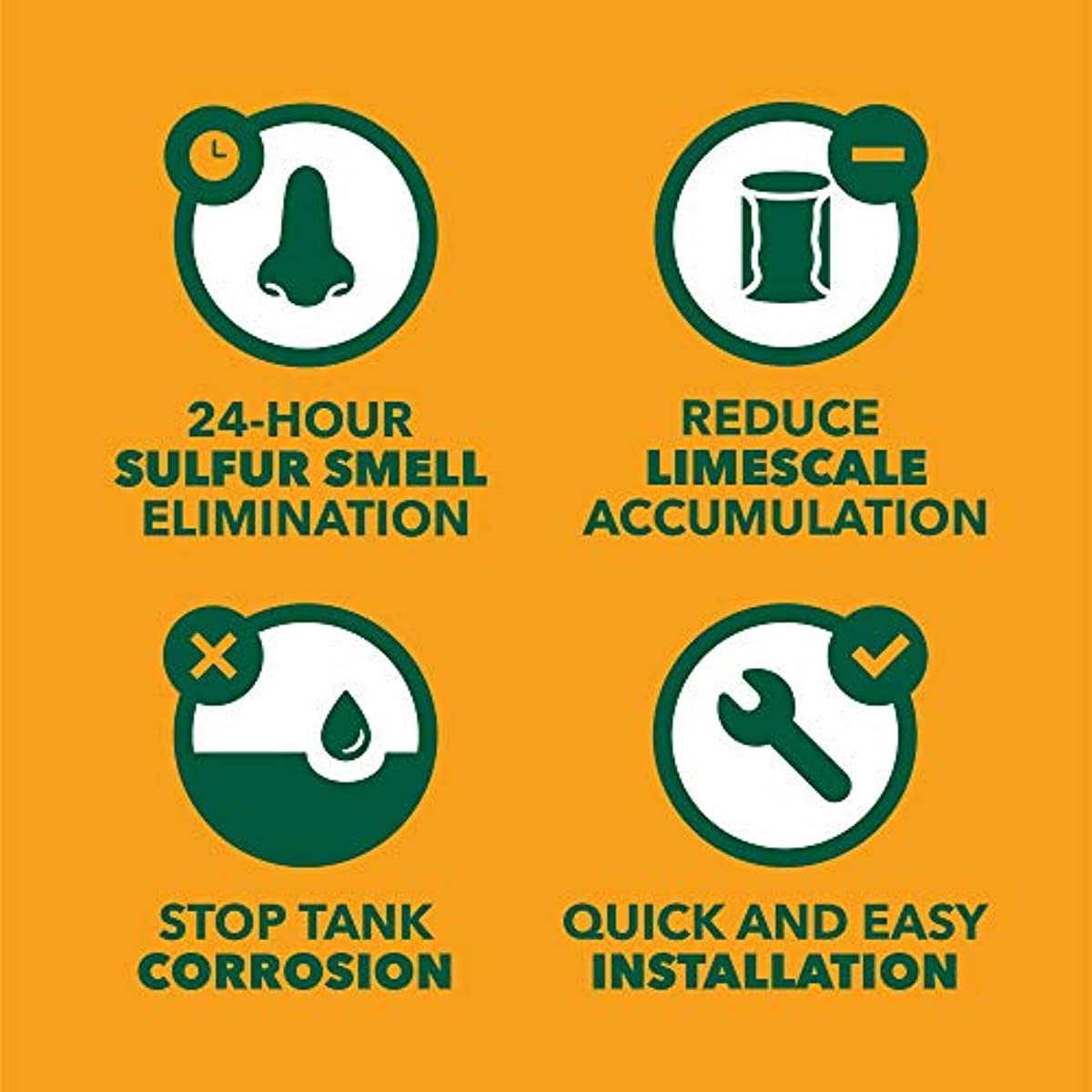 Say Goodbye to Odors Eliminate your water heat odor problem by removing the rotten egg smell caused by hydrogen sulfide with our advanced powered anode rod. Permanent Corrosion Protection Designed to replace your 10-30-gallon water heaters hex head anode rod, it can help defend against any level of water hardness. Energy Efficient Design By reducing mineral accumulation on the tank it can help improve the water quality while reducing stress on the tank to reduce energy costs.