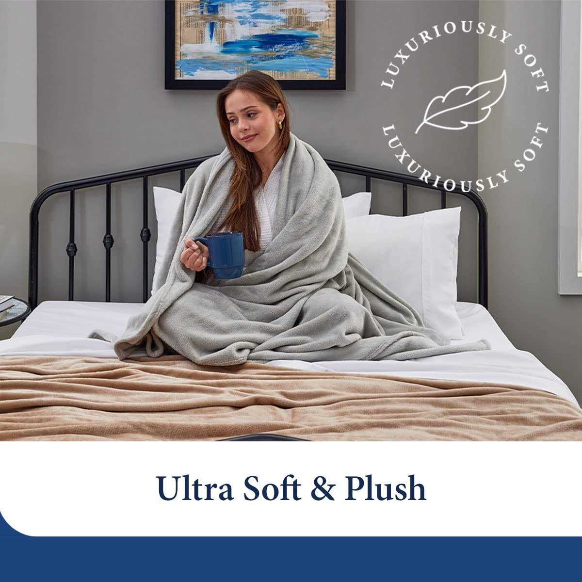 Keep cozy and warm with our generously sized, extra plush blankets. Made with 100% microfiber polyester, our hypoallergenic blankets are designed with a fleece finish for superior softness and cleanliness. They can be used on beds – or even as a cuddly spare blanket for couch time and hosting guests. They also make a snuggly addition to every college dorm and stay fresher longer because they are antibacterial and dust mite resistant.