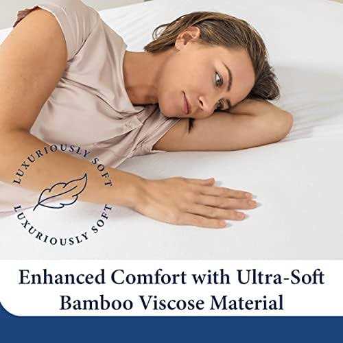 ULTRA-SOFT MATTRESS PROTECTION: Keep your mattress feeling brand new for years with our hypoallergenic bamboo fabric protector. Crafted with 70% natural bamboo rayon and 30% polyester, this strong yet soft material eliminates allergens, bacteria, and dust mites entirely. QUIET & COOLING: This stretchable fabric is designed to silently stay in place all night, even with movement in the bed. It’s highly breathable and promotes air circulation, so you’ll stay cool and clean while you sleep. 100% WATERPROOF: Expand the life of your mattress by making it resistant to sweat, liquid spills, stains, and urine from humans and pets. Our special, double-layer membrane technology absorbs any mess to completely protect your mattress. HYPOALLERGENIC & ANTIBACTERIAL: Beds are generally a huge breeding ground for bacteria. Our bamboo protective cover is the best shield against bacteria, allergens, and dust mites because it naturally wicks away moisture and prevents these germs from growing in your bed.