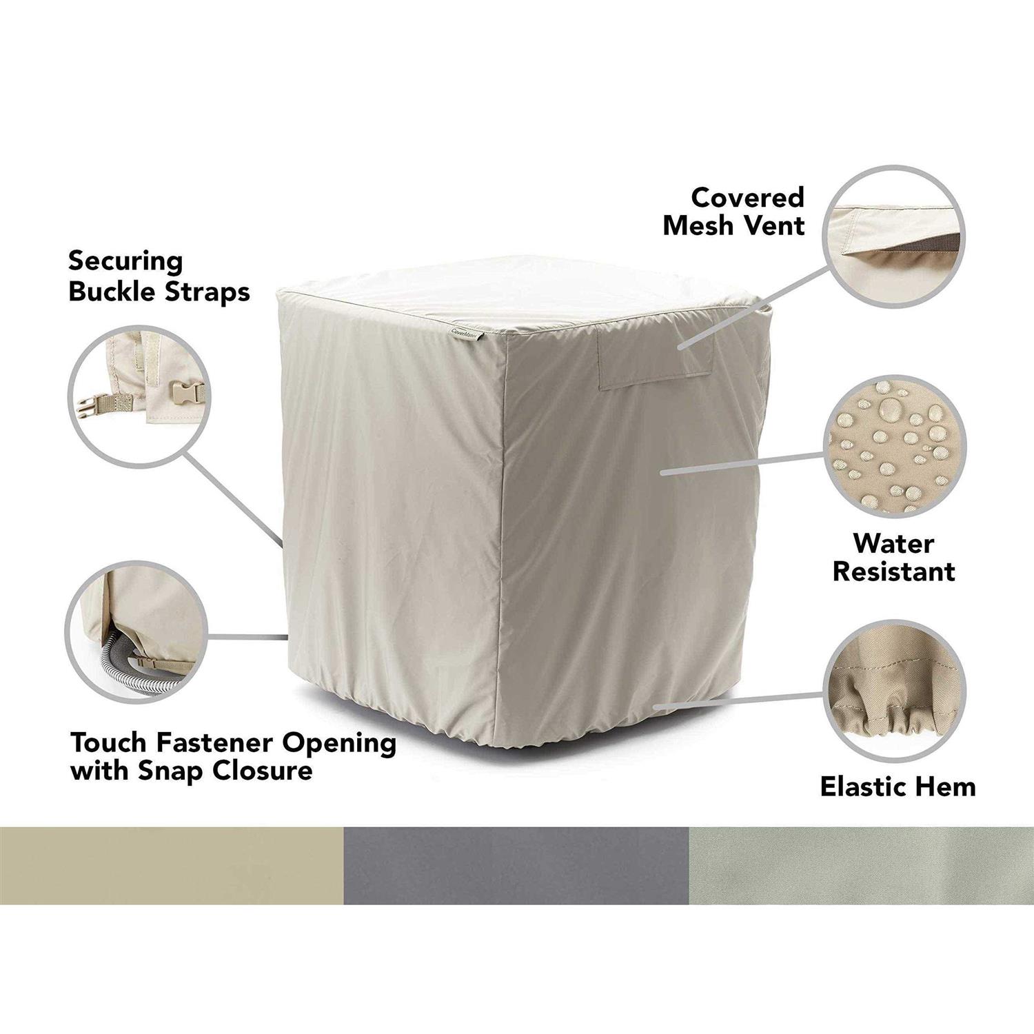 Elite covers are lightweight, making them easy to put on, take off, and store. br br High-Quality Protection br Extreme winter conditions are not only hard on you, but also on your AC unit. Debris falling on or into your unit can take a toll on its performance and lead to costly repairs. Do not worry about debris falling into your AC and causing you and your family a massive headache. Protect your AC from snow, twigs, or any other debris with our Full AC Cover. br br Details That Matter br Covermates AC Covers are constructed with mesh vents to promote airflow and prevent trapped moisture. Installation is made simple with an elastic hem and adjustable buckle straps that provides a flexible, yet snug fit. Touch fastener closure is located on one corner of the cover to accommodate wires and pipes of different heights. Our versatile cover is designed to fit various brands and models.