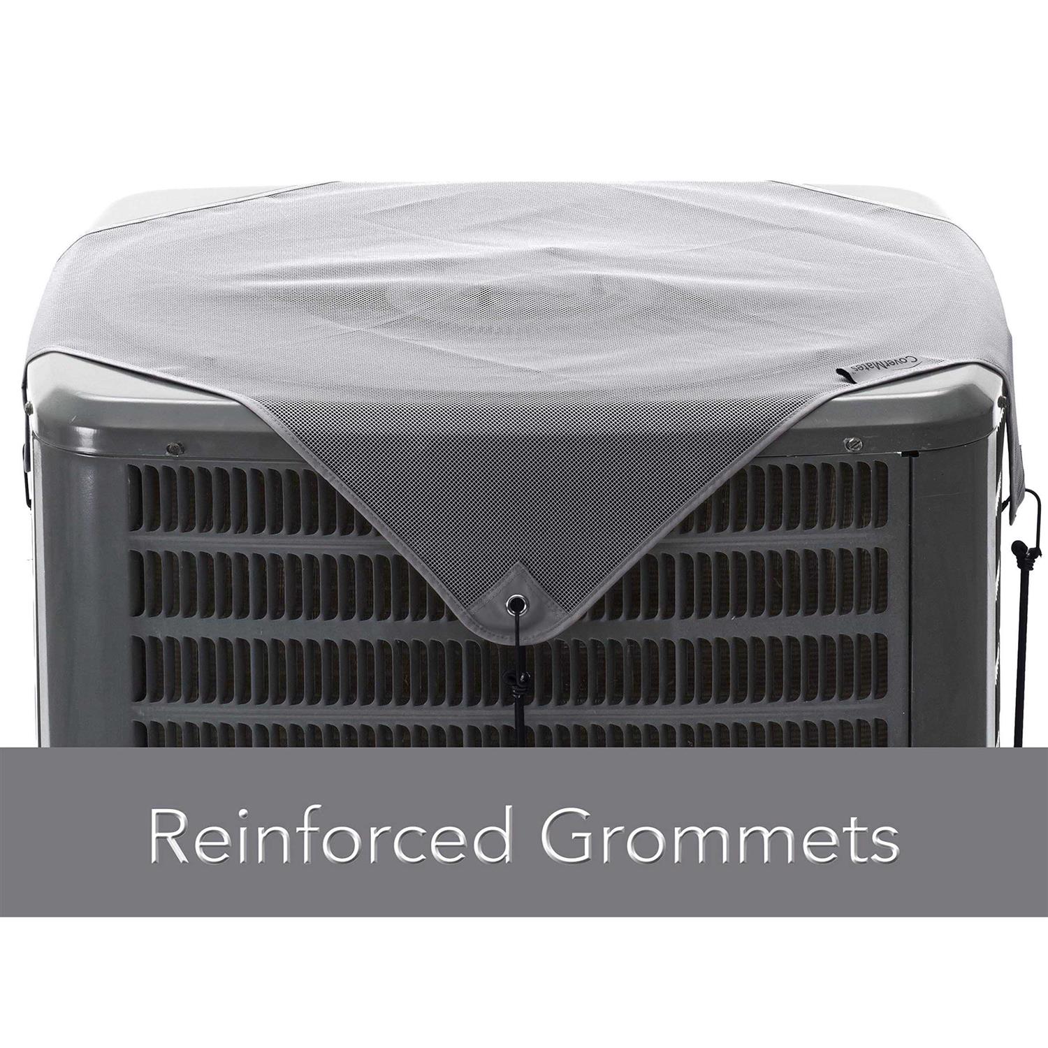 Accessories by Covermates. Details:Debris falling on or into your unit can take a toll on its performance and lead to your unit overworking. If left unprotected, the build-up of leaves and sticks can lead to costly repairs or maintenance. Do not worry about debris falling into your AC and causing you and your family a massive headache. Protect your AC from leaves, twigs, or any other debris with our Mesh Top AC Cover. Covermates Elite covers are ideal for climates with low to moderate humidity and sunlight and moderate to high wind gusts, rainfall, and snowfall. Elite covers are lightweight, making them easy to put on, take off, and store. Covermates Mesh Top AC Covers are constructed with a durable mesh polyester that can be used while your unit is on. Designed to stand up to the harsh elements and take the beating, so your AC stays protected. 4 rust-resistant grommets and heavy-duty bungee cords hold the cover securely in place.