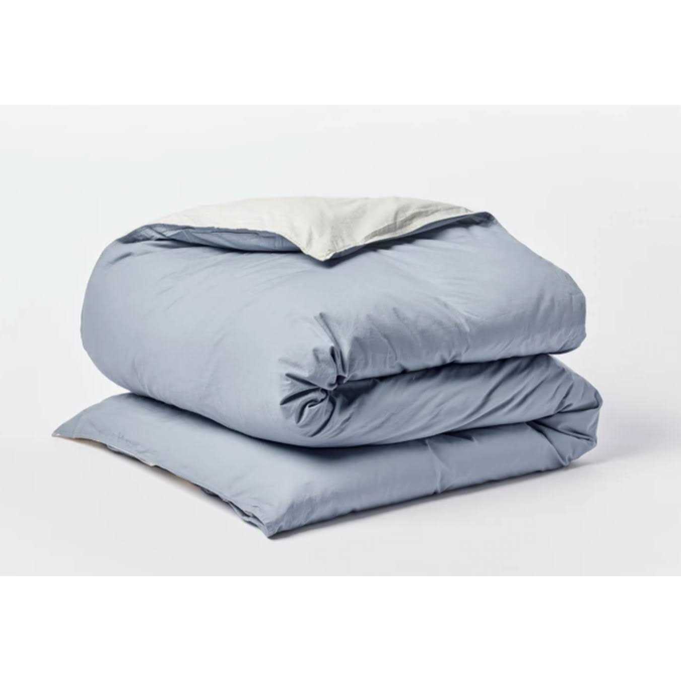 Coyuchi Crinkled Organic Percale Duvet Cover – Blue – Queen