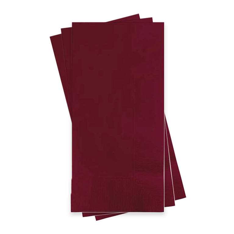 Our Burgundy Dinner Napkins from the Touch of Color collection are perfect for any special event! The high quality napkins are made from 2-ply tissue and feature a beautiful red wine shade. Each napkin measures 16″ x 16″ and is folded to 4″ x 8″. An embossed coin edge pattern on two of the napkin edges adds a touch of elegance. With 50 napkins per package, these Burgundy Dinner Napkins are ideal for larger events like weddings, family reunions and company events. The package also includes a color match consistency guarantee on each manufactured package. Our Burgundy Dinner Napkins are the perfect addition to any Solid Color Party Tableware and Accessories.