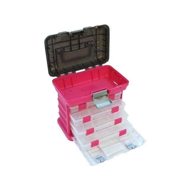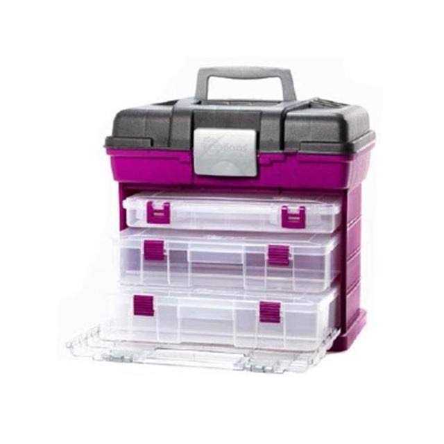 Uncap your creative potential when you stay organized with the Creative Options Small Rack System. This unique storage system allows you to easily organize and stow away your creative side into one compact and portable case. This versatile bright pink case is perfect for art supplies, makeup, paints, sewing supplies and more! Storage case comes with 4 removable 2-3500 utility boxes that easily slide into place like shelves in a drawer, and that are securely fastened with durable latches and a front cover. There is even a bulk storage compartment on top to help store larger items, so that you can keep all of your favorite supplies in one easy to access case!